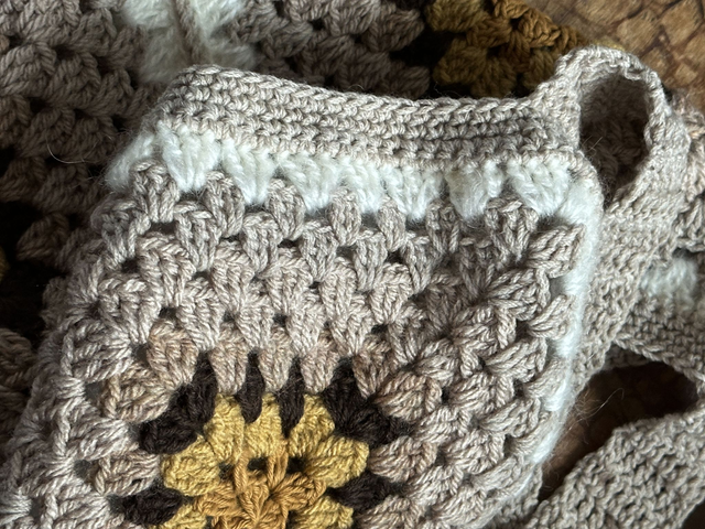 Il est réalisé avec des fils mixtes de seconde main.