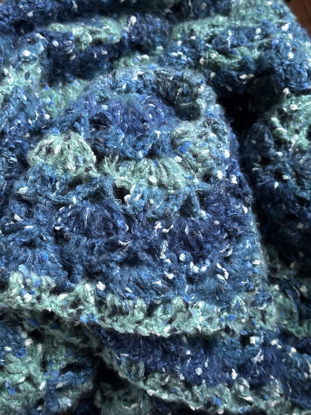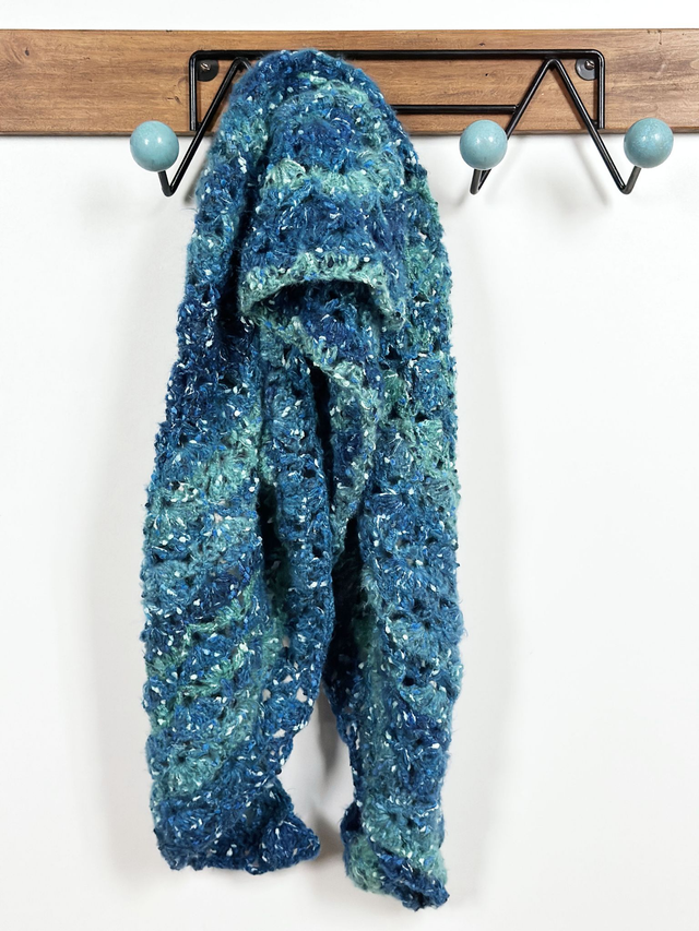 Le châle Mosaic blue offre la douceur et le confort d’un châle entièrement fait à la main. Cette pièce unique procure une sensation cocooning idéale en toute saison.