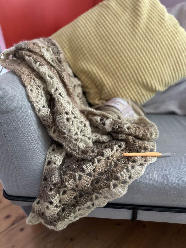 Le châle Rich gold offre la douceur et le confort d’un châle entièrement fait à la main. Cette pièce unique procure une sensation cocooning idéale en toute saison.