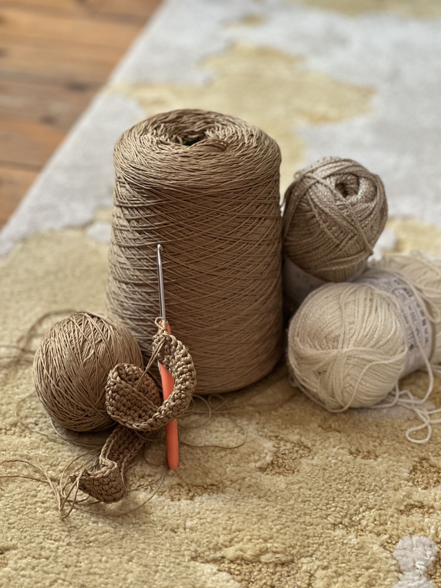 Les fils acrylique ont été chinés chez chez Emmaüs.